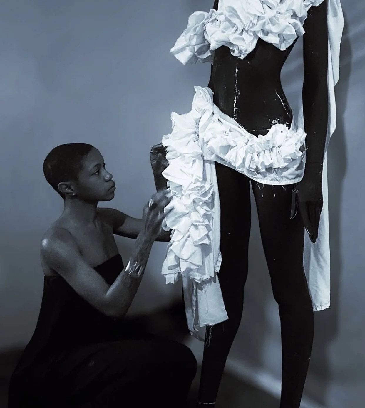DESIGN TRADITIONAL AND UNCONVENTIONAL BAG LADY PROTOTYPE 1 COPPER RIBBON BALLERINA SHELL GOOD JEANS TOP PROTOTYPE ZERO WASTE EVERYTHING, BUT IN MY BUBBLE MET GALA '24 TETRIS CANYON